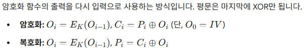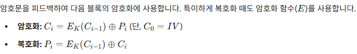 -> 한단계 앞의 암호문 블록을 암호 알고리즘으로