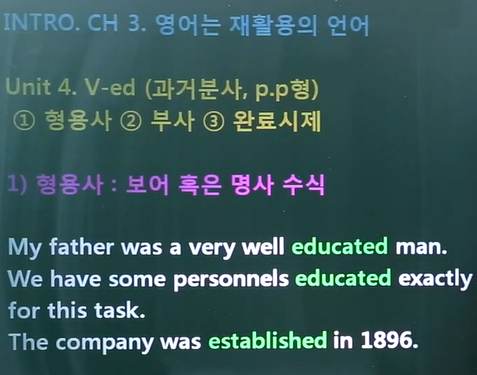 1) 우리 아빠는 아주 잘 교육받은 남자이다. -> 명사 수식