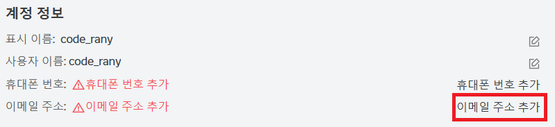 ② 계정 정보에서 이메일 주소 추가 클릭하기