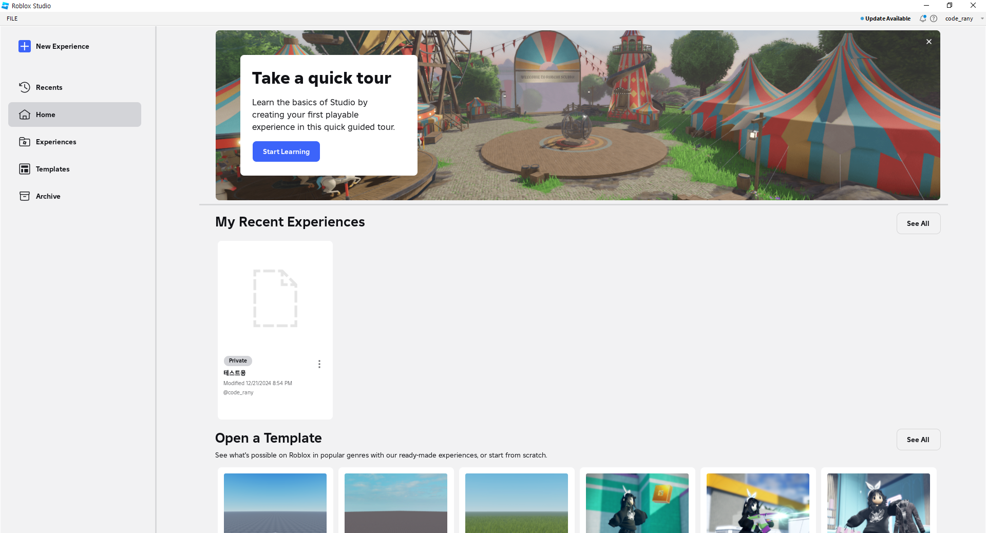 설치가 완료되면 로블록스 스튜디오가 실행됩니다.