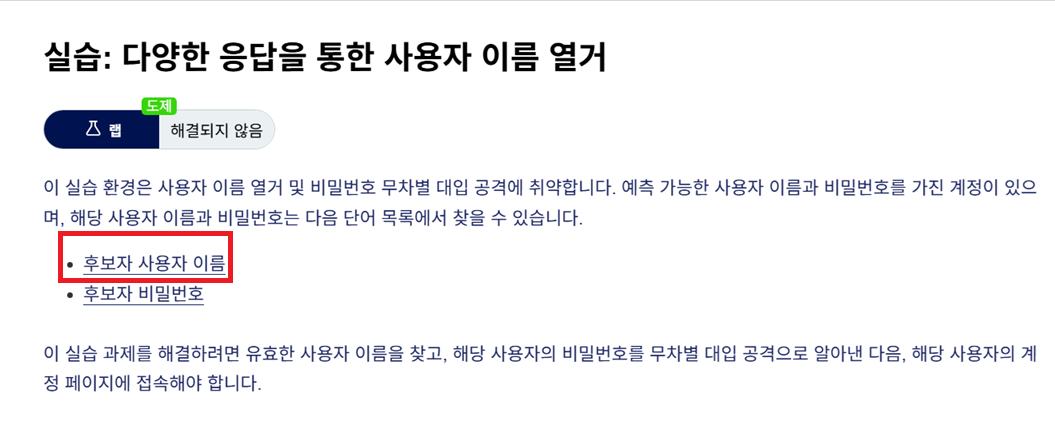 실습1. 아이디, 비밀번호 목록이 있는 브루트 포스 어택