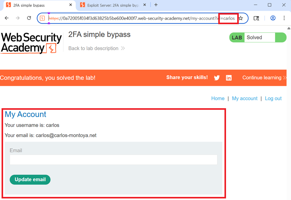 6. 인증 코드를 입력하라는 메시지가 나타나면 URL을 수동으로 변경하여 해당 페이지로 이동하세요 /my-account. 페이지가 로드되면 문제가 해결된 것입니다.