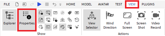 상단 바 보기(뷰: View)를 클릭하고 속성창(프로퍼티스: Properties)을 엽니다.