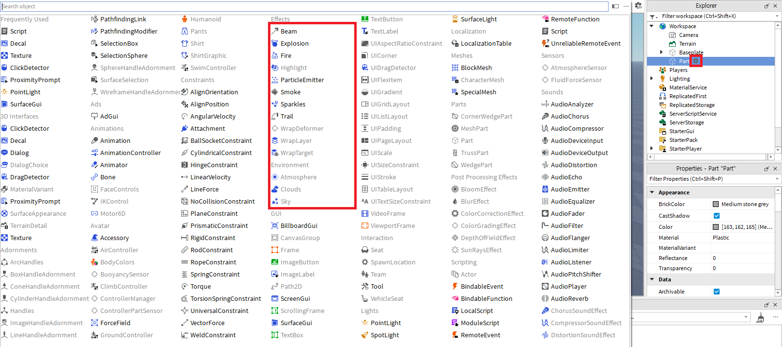 로블록스 스튜디오, 파트에 각종 효과 넣기