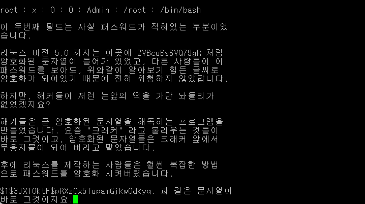 새로운 단어도 배웠는데, 예전에는 /etc/passwd 에서 크리덴셜을 확보할 수 있었다고 한다.