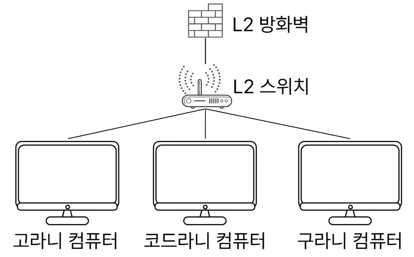 그래서 나온게 L2 방화벽이다. 쨔잔~