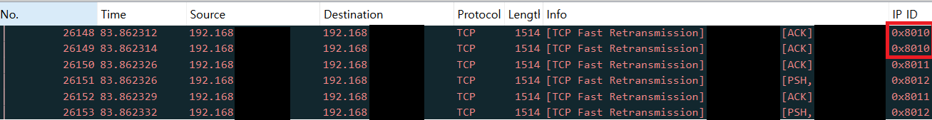 단편화가 된 패킷의 ID를 확인하기
