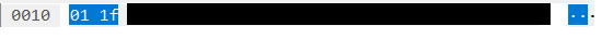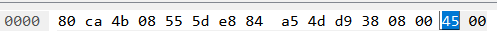 이 내용은 패킷 바이트창 헥스(HEX) 부분에서도 확인이 가능하다. 바이트창은 16진수 형태를 사용한다.