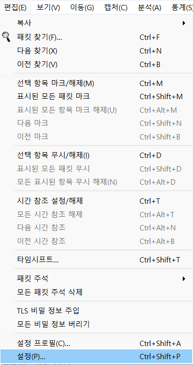 패킷을 분석하기 위해 와이어샤크(www.wireshark.org)를 설치한다.
