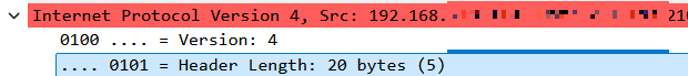 version은 IPv4이고, IHL은 5라는 의미이다.